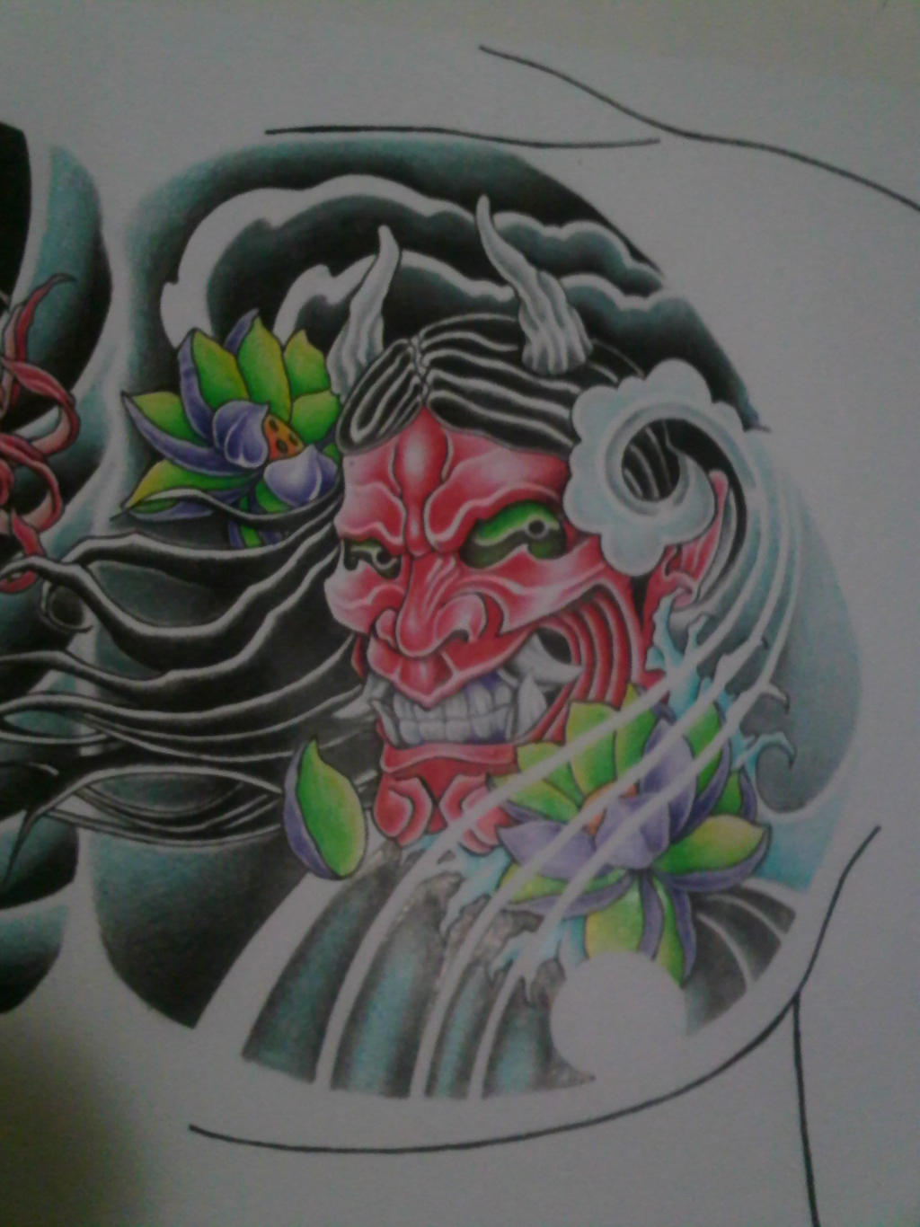 Hannya Mask Chest Tattoo Design Left Side Detail By Crimeskull On Deviantart